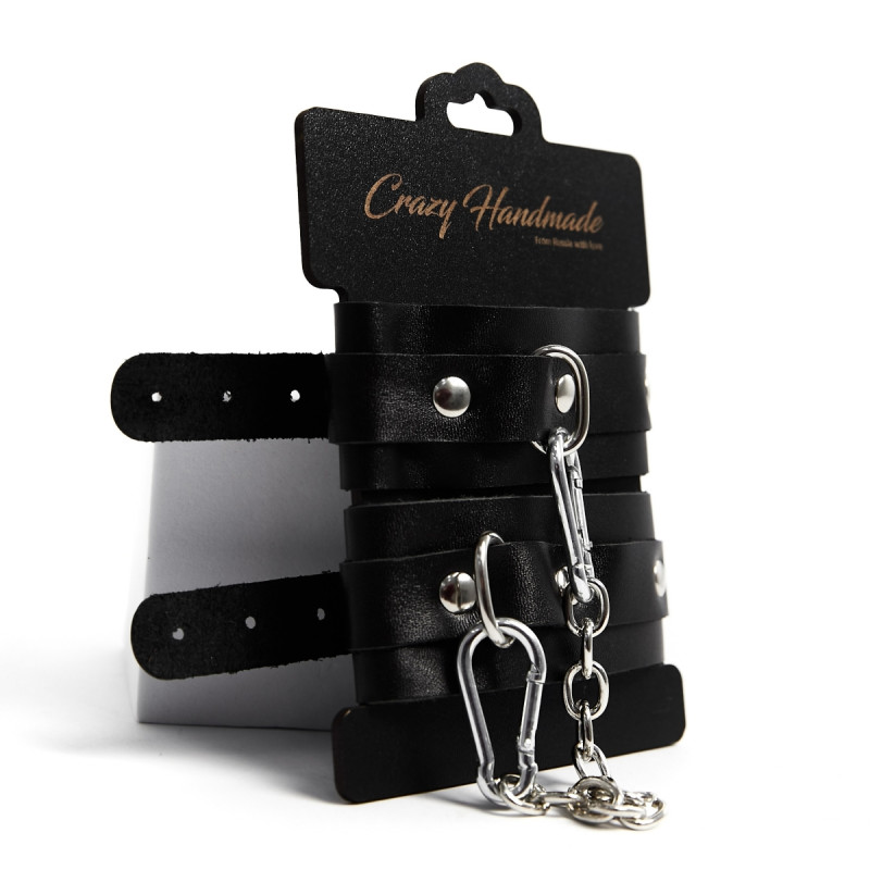 В комплект также входит соединительный кожаный элемент с двумя карабинами, с помощью которого можно зафиксировать между собой руки.