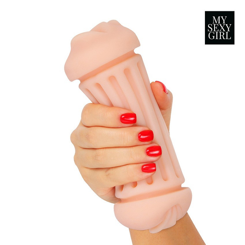 Одна сторона мастурабтора имитирует сочное манящее влагалище, другая - чувственный ротик с игривым язычком.